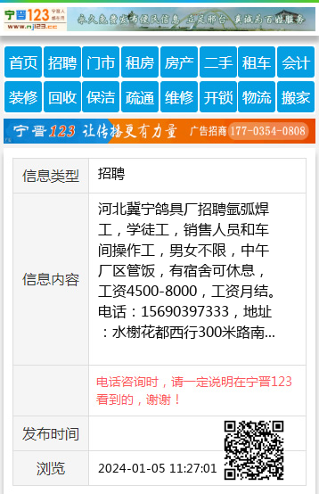 免责声明:本栏目信息由网友自行发布,宁晋123不承担任何责任!提高警惕,谨防诈骗!做推广、做信息置顶!请加宁晋123客服微信:ningjin009