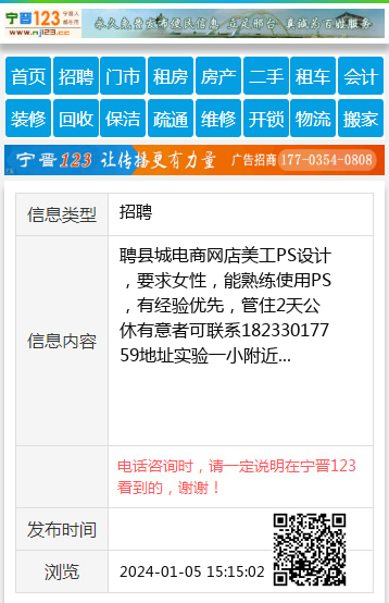 聘县城电商网店美工PS设计,要求女性,能熟练使用PS,有经验优先,管住2天公休有意者可联系18233017759地址实验一小附近 【电话咨询时,请一定说明在宁晋123看到的,谢谢!】 |