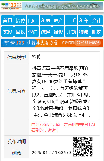 | 防骗提醒: | 宁晋123(www.nj123.cc)提醒您:手工活、网络兼职、刷单,都是骗子!凡以各种名义收取费用的都是骗子!找工作是往兜里挣钱,让你往外掏钱的都是骗子!异地招聘请提高警惕,谨防诈骗! |