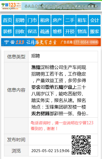 报名材料:彩照一张、身份证及复印件一张。报名表求职意向写一园区糖车间。咨询微信、电话:13473098958 【电话咨询时,请一定说明在宁晋123看到的,谢谢!】 |