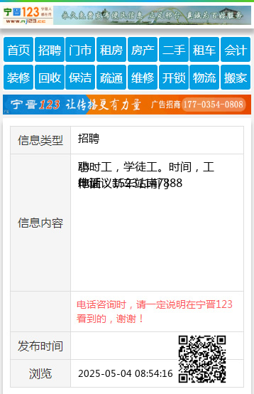 免责声明:本栏目信息由网友自行发布,宁晋123不承担任何责任!提高警惕,谨防诈骗!做推广、做信息置顶!请加宁晋123客服微信:ningjin009