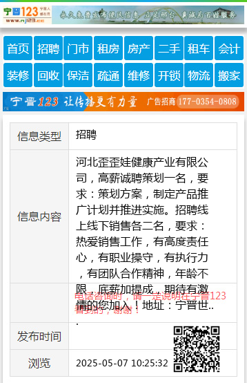 河北歪歪娃健康产业有限公司,高薪诚聘策划一名,要求:策划方案,制定产品推广计划并推进实施。招聘线上线下销售各二名,要求:热爱销售工作,有高度责任心,有职业操守,有执行力,有团队合作精神,年龄不限,底薪加提成,期待有激情的您加入!地址:宁晋世爵公馆,联系电话:17532378688,0319-5689888 【电话咨询时,请一定说明在宁晋123看到的,谢谢!】 |