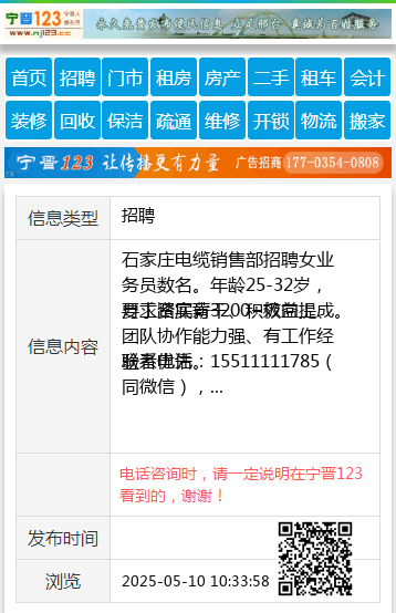 联系电话:15511111785(同微信), 【电话咨询时,请一定说明在宁晋123看到的,谢谢!】 |