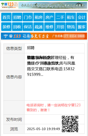 要求:有酒店管理经验,有责任心,待遇优厚。