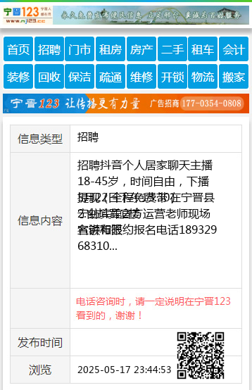 | 防骗提醒: | 宁晋123(www.nj123.cc)提醒您:手工活、网络兼职、刷单,都是骗子!凡以各种名义收取费用的都是骗子!找工作是往兜里挣钱,让你往外掏钱的都是骗子!异地招聘请提高警惕,谨防诈骗! |