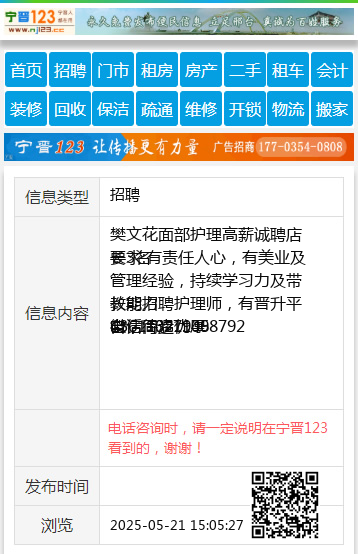 微信同步 【电话咨询时,请一定说明在宁晋123看到的,谢谢!】 |