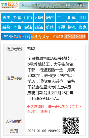 宁晋牧原招聘A级养殖技工,b级养殖技工,大学生储备干部,待遇五险一金,月薪7000加,养殖技工初中以上学历,退役军人岗位,储备干部应往届大专以上学历,应聘日期截止到2月25日电话15369933257 【电话咨询时,请一定说明在宁晋123看到的,谢谢!】 |