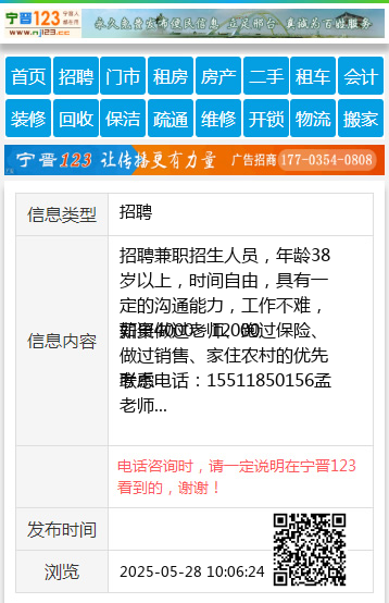 | 防骗提醒: | 宁晋123(www.nj123.cc)提醒您:手工活、网络兼职、刷单,都是骗子!凡以各种名义收取费用的都是骗子!找工作是往兜里挣钱,让你往外掏钱的都是骗子!异地招聘请提高警惕,谨防诈骗! |