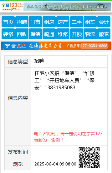 住宅小区招“保洁”“维修工”“开扫地车人员”“保安”13831985083