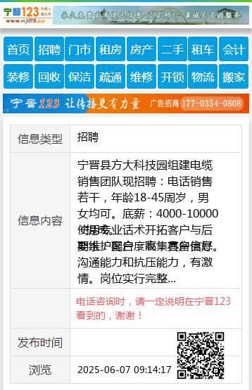 宁晋县方大科技园组建电缆销售团队现招聘:电话销售若干,年龄18-45周岁,男女均可。底薪:4000-10000+提成。