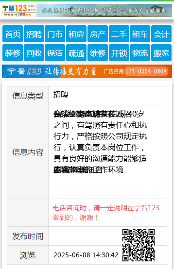 电话咨询时,请一定说明在宁晋123看到的,谢谢! |