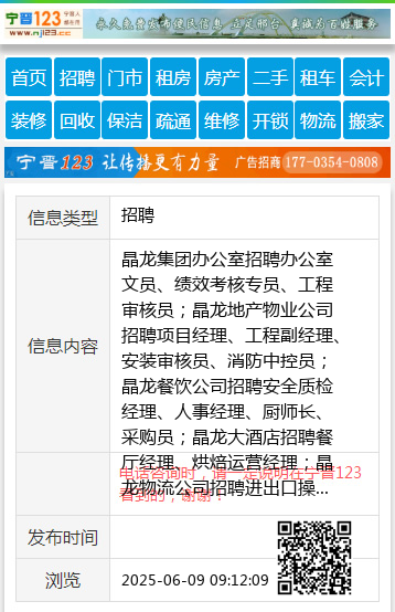 晶龙集团办公室招聘办公室文员、绩效考核专员、工程审核员;晶龙地产物业公司招聘项目经理、工程副经理、安装审核员、消防中控员;晶龙餐饮公司招聘安全质检经理、人事经理、厨师长、采购员;晶龙大酒店招聘餐厅经理、烘焙运营经理;晶龙物流公司招聘进出口操作主管;医养公司招聘市场经营部经理、市场专员,岗位多多,有意者电话联系:03195856130 【电话咨询时,请一定说明在宁晋123看到的,谢谢!】 |