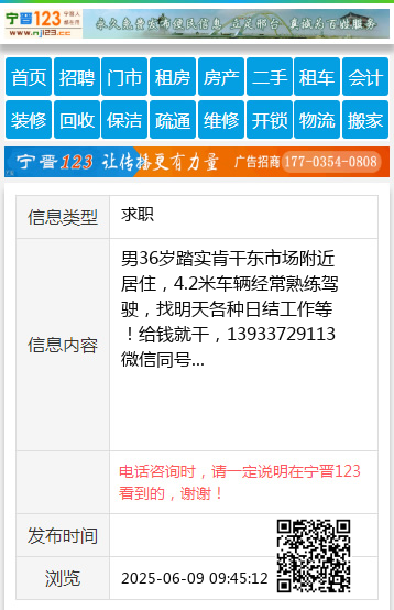 男36岁踏实肯干东市场附近居住,4.2米车辆经常熟练驾驶,找明天各种日结工作等!给钱就干,13933729113微信同号 【电话咨询时,请一定说明在宁晋123看到的,谢谢!】 |