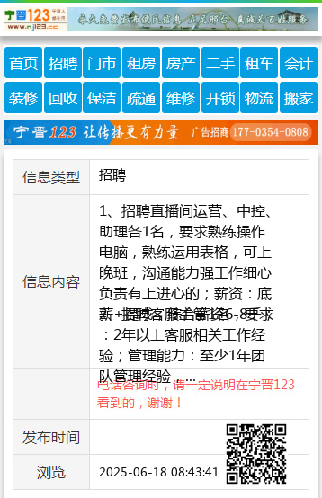 工作地点:宁晋六中附近,联系电话:17731995078 【电话咨询时,请一定说明在宁晋123看到的,谢谢!】 |