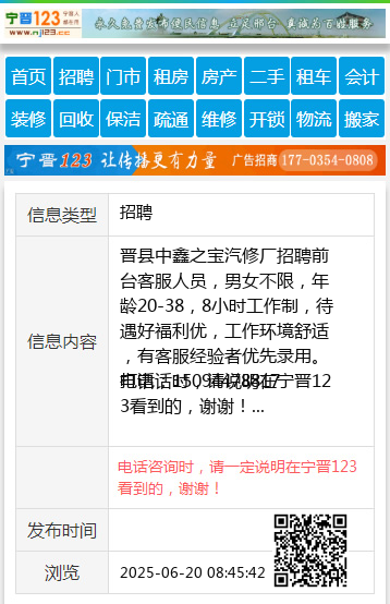 打电话时,请说明在宁晋123看到的,谢谢! 【电话咨询时,请一定说明在宁晋123看到的,谢谢!】 |