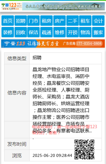 晶龙地产物业公司招聘项目经理、水电监审员、消防中控员;晶龙餐饮公司招聘安全质检经理、人事经理、厨师长、采购员;晶龙大酒店招聘厨师长、烘焙运营经理;晶龙物流公司招聘进出口操作主管;医养公司招聘市场经营部经理、市场专员,岗位多多,有意者电话联系:03195856130 【电话咨询时,请一定说明在宁晋123看到的,谢谢!】 |