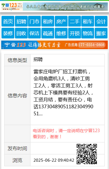雷家庄电炉厂招工打磨机,会用角磨机3人,清砂工男工2人,零活工男工3人,射芯机上下模具要有经验2人,工资月结,要有责任心,电话1373048905118230499051 【电话咨询时,请一定说明在宁晋123看到的,谢谢!】 |