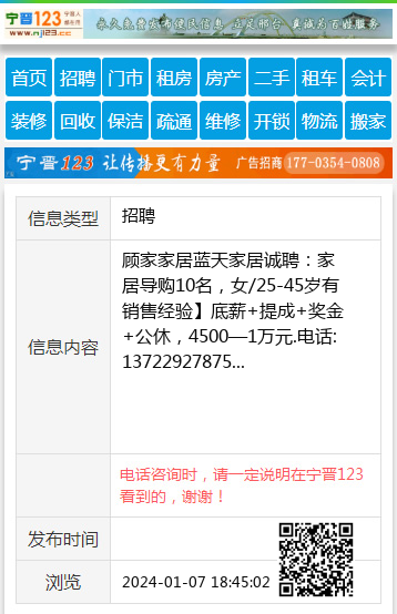 顾家家居蓝天家居诚聘:家居导购10名,女/25-45岁有销售经验】底薪+提成+奖金+公休,4500—1万元.电话:13722927875 【电话咨询时,请一定说明在宁晋123看到的,谢谢!】 |