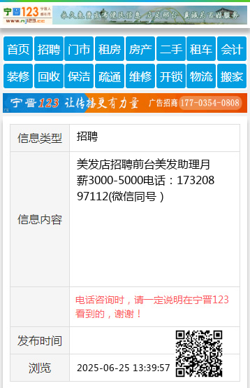 美发店招聘前台美发助理月薪3000-5000电话:17320897112(微信同号)