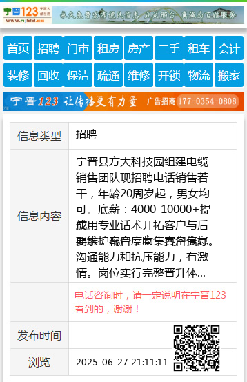 宁晋县方大科技园组建电缆销售团队现招聘电话销售若干,年龄20周岁起,男女均可。底薪:4000-10000+提成。