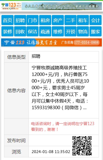 宁晋牧原诚聘高级养殖技工12000+元/月,执行兽医7500+元/月,优秀人员可达10000+元,要求男士45周岁以下,女士40周岁以下,每月可以集中休假4天,电话:15933198300(同微信) 【电话咨询时,请一定说明在宁晋123看到的,谢谢!】 |