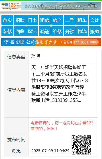天一广场半天妖招聘长期工(三个月起)前厅员工数名女性18~30周岁每天工作6~8小时工资2800左右