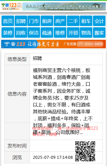 福到商贸主营六个核桃,板城系列酒,剑南春酒厂剑南老窖窖龄酒,绵竹大曲,口子窖系列,因业务扩张,诚骋业务员3名,要求25岁及以上,男女不限,有白酒或其他快消品经验。待遇丰厚,底薪+提成+年终奖,上不封顶,福利多多,保险+团建+旅游,公司氛围好,诚招各路人才共创光辉!联系电话13323190399或18931931045 【电话咨询时,请一定说明在宁晋123看到的,谢谢!】 |