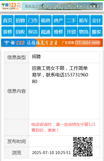 电话咨询时,请一定说明在宁晋123看到的,谢谢!