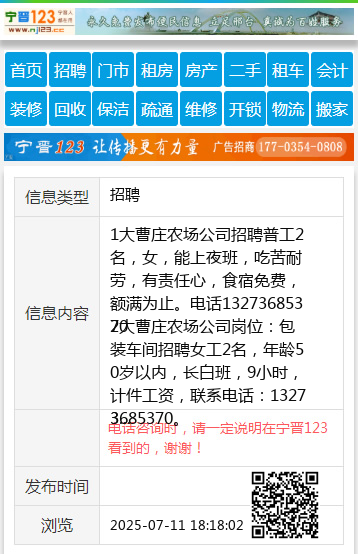电话咨询时,请一定说明在宁晋123看到的,谢谢! |
