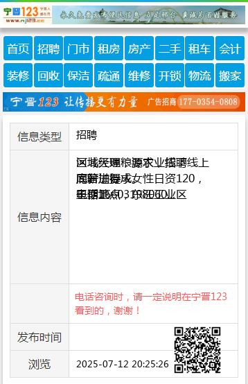 | 防骗提醒: | 宁晋123(www.nj123.cc)提醒您:手工活、网络兼职、刷单,都是骗子!凡以各种名义收取费用的都是骗子!找工作是往兜里挣钱,让你往外掏钱的都是骗子!异地招聘请提高警惕,谨防诈骗! |