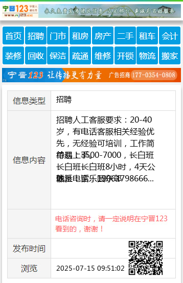 联系电话:19061798666 【电话咨询时,请一定说明在宁晋123看到的,谢谢!】 |