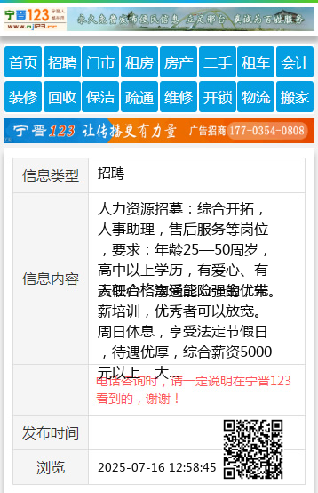 人力资源招募:综合开拓,人事助理,售后服务等岗位,要求:年龄25—50周岁,高中以上学历,有爱心、有责任心,沟通能力强的优先。