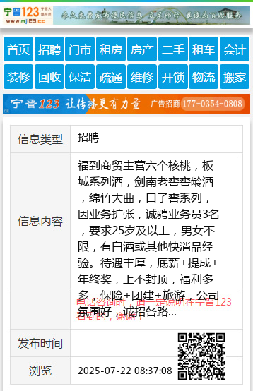 福到商贸主营六个核桃,板城系列酒,剑南老窖窖龄酒,绵竹大曲,口子窖系列,因业务扩张,诚骋业务员3名,要求25岁及以上,男女不限,有白酒或其他快消品经验。待遇丰厚,底薪+提成+年终奖,上不封顶,福利多多,保险+团建+旅游,公司氛围好,诚招各路人才共创光辉!联系电话13323190399或18931931045 【电话咨询时,请一定说明在宁晋123看到的,谢谢!】 |