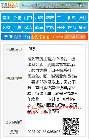 福到商贸主营六个核桃,板城系列酒,剑南老窖窖龄酒,绵竹大曲,口子窖系列,因业务扩张,诚骋业务员3名,要求25岁及以上,男女不限,有白酒或其他快消品经验。待遇丰厚,底薪+提成+年终奖,上不封顶,福利多多,保险+团建+旅游,公司氛围好,诚招各路人才共创光辉!联系电话13323190399或18931931045~ 【电话咨询时,请一定说明在宁晋123看到的,谢谢!】 |