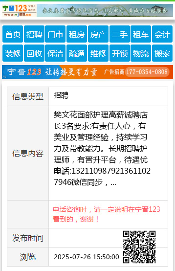 电话:1321109879213611027946微信同步, 【电话咨询时,请一定说明在宁晋123看到的,谢谢!】 |