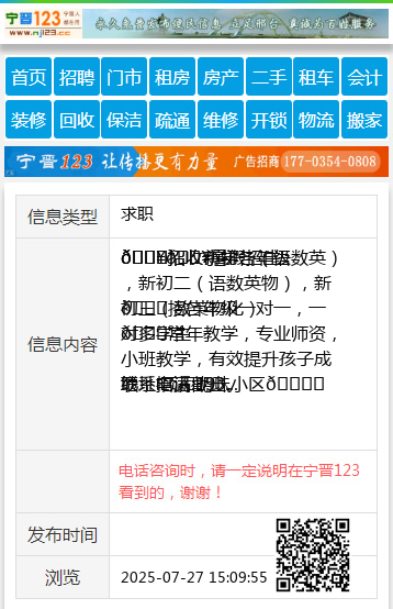 电话咨询时,请一定说明在宁晋123看到的,谢谢!