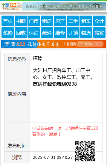 免责声明:本栏目信息由网友自行发布,宁晋123不承担任何责任!提高警惕,谨防诈骗!做推广、做信息置顶!请加宁晋123客服微信:ningjin009