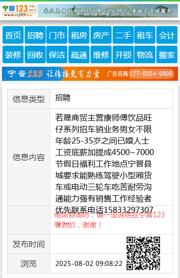 若晟商贸主营康师傅饮品旺仔系列招车销业务男女不限年龄25-35岁之间已婚人士工资底薪加提成4500~7000节假日福利工作地点宁晋县城要求能熟练驾驶小型厢货车或电动三轮车吃苦耐劳沟通能力强有销售工作经验者优先联系电话15833297307, 【电话咨询时,请一定说明在宁晋123看到的,谢谢!】 |