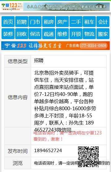 北京急招外卖员骑手,可提供车住,当天安排住宿,站点直招直接来站点面试,单价7-12日均40-90单,跑的单越多单价越高,平台各种补贴月综合8000-16000多劳多得上不封顶,年龄18-55周岁,联系人:孙先生 18946527243微信同号