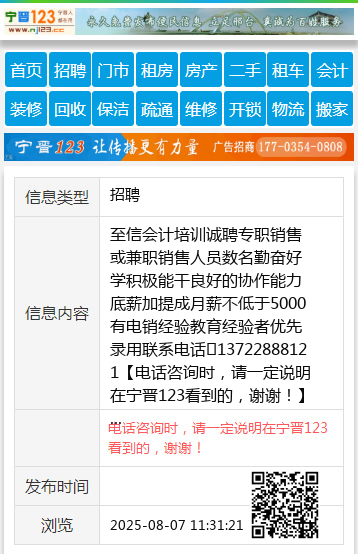 | 防骗提醒: | 宁晋123(www.nj123.cc)提醒您:手工活、网络兼职、刷单,都是骗子!凡以各种名义收取费用的都是骗子!找工作是往兜里挣钱,让你往外掏钱的都是骗子!异地招聘请提高警惕,谨防诈骗! |