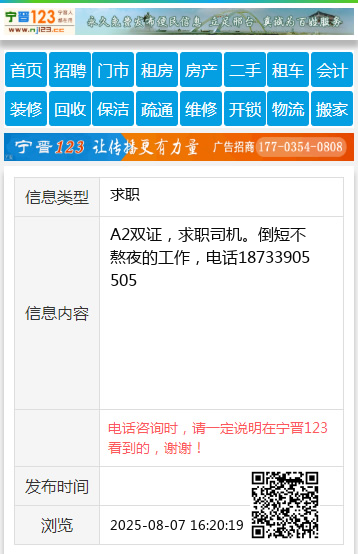 免责声明:本栏目信息由网友自行发布,宁晋123不承担任何责任!提高警惕,谨防诈骗!做推广、做信息置顶!请加宁晋123客服微信:ningjin009