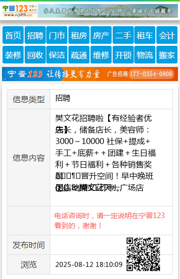 樊文花招聘啦【有经验者优先】