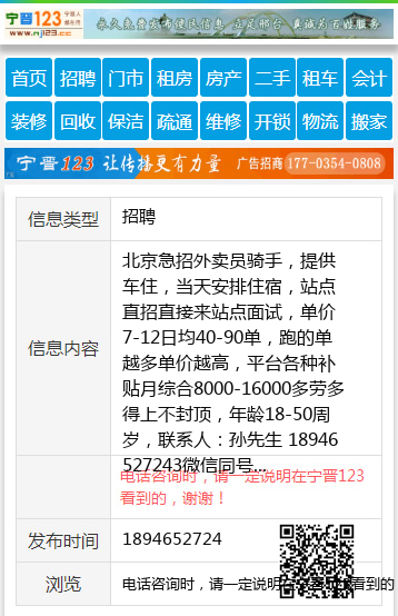 北京急招外卖员骑手,提供车住,当天安排住宿,站点直招直接来站点面试,单价7-12日均40-90单,跑的单越多单价越高,平台各种补贴月综合8000-16000多劳多得上不封顶,年龄18-50周岁,联系人:孙先生 18946527243微信同号