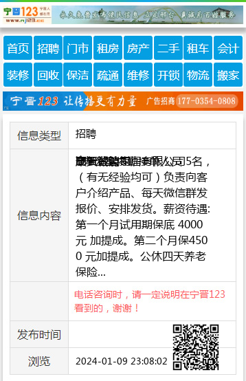 | 防骗提醒: | 宁晋123(www.nj123.cc)提醒您:手工活、网络兼职、刷单,都是骗子!凡以各种名义收取费用的都是骗子!找工作是往兜里挣钱,让你往外掏钱的都是骗子!异地招聘请提高警惕,谨防诈骗! |