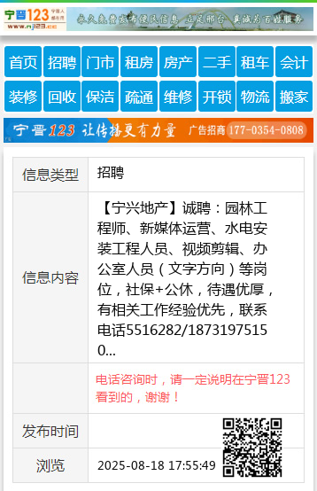 【宁兴地产】诚聘:园林工程师、新媒体运营、水电安装工程人员、视频剪辑、办公室人员(文字方向)等岗位,社保+公休,待遇优厚,有相关工作经验优先,联系电话5516282/18731975150 【电话咨询时,请一定说明在宁晋123看到的,谢谢!】 |