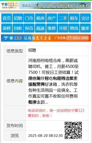 河南郑州电缆仓库,高薪诚聘司机、普工,月薪4500至7500!可按日工资结算!试用一周,包吃包住待遇优,