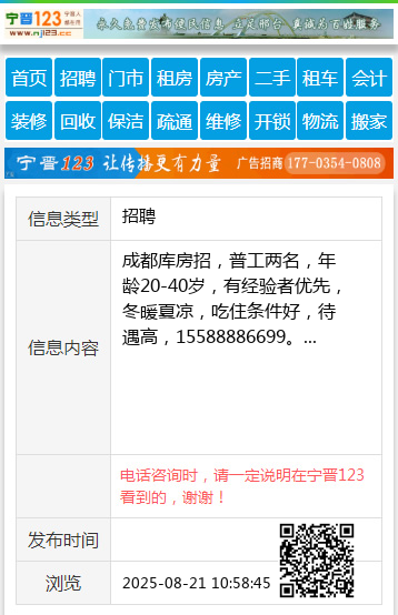 免责声明:本栏目信息由网友自行发布,宁晋123不承担任何责任!提高警惕,谨防诈骗!做推广、做信息置顶!请加宁晋123客服微信:ningjin009