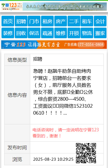 急聘!赵飙牛肋条自助烤肉宁晋店,招聘前台一名要求(女),前厅服务人员数名男女不限,底薪➕全勤➕公休,综合薪资2800—4500、工资面议☎️同微信15231020610!!!! 【电话咨询时,请一定说明在宁晋123看到的,谢谢!】 |