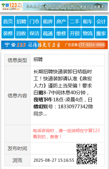 免责声明:本栏目信息由网友自行发布,宁晋123不承担任何责任!提高警惕,谨防诈骗!做推广、做信息置顶!请加宁晋123客服微信:ningjin009