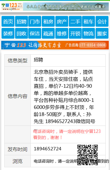北京急招外卖员骑手,提供车住,当天安排住宿,站点直招,单价7-12日均40-90单,跑的单越多单价越高,平台各种补贴月综合8000-16000多劳多得上不封顶,年龄18-50周岁,联系人:孙先生 18946527243微信同号